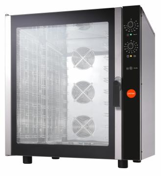 - Надійне керування: Піч оснащена аналоговою панеллю управління, яка відрізняється простотою та надійністю - оптимальний вибір для професійних кухонь з інтенсивним завантаженням, де важлива оперативність та стабільність налаштувань.