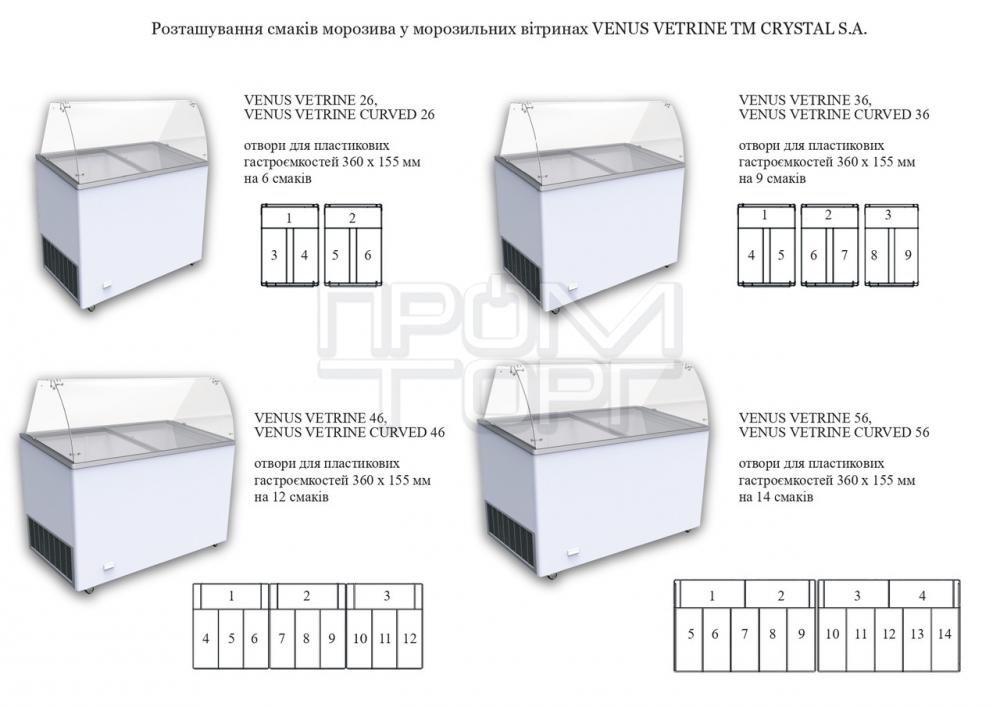 Сравнительные характеристики моделей Морозильні скрині для м'якого морозива пряме скло CRYSTAL VENUS VETRINE 46,56 (Греція)