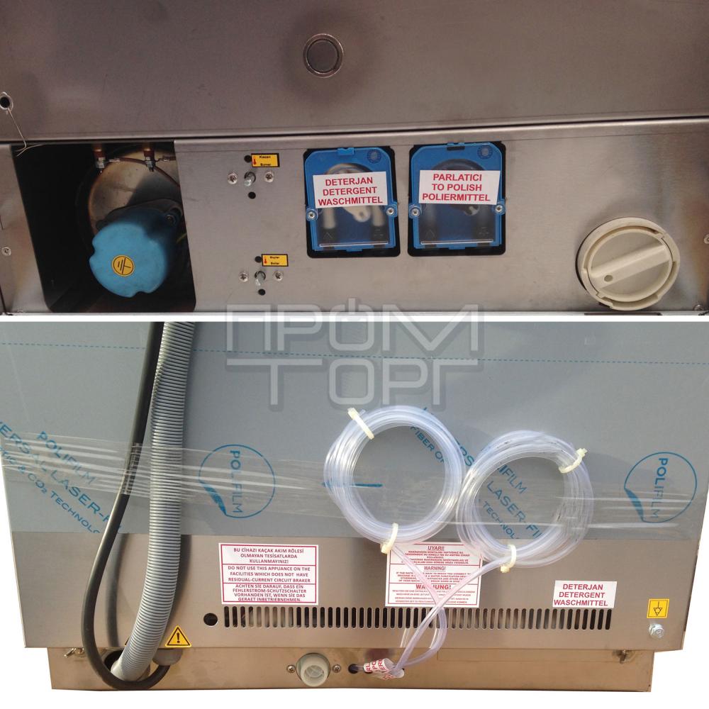 Цільновитягнута ванна виготовлена з нержавіючої сталі. Насоси виробництва Італія марки Оlympia. Передбачені нерозбірні ніжки, які не ламаються. Також є магнітний вимикач безпеки. Повністю автоматична робота за 55ºC. Ополіскування відбувається при температурі 80 - 85ºC.